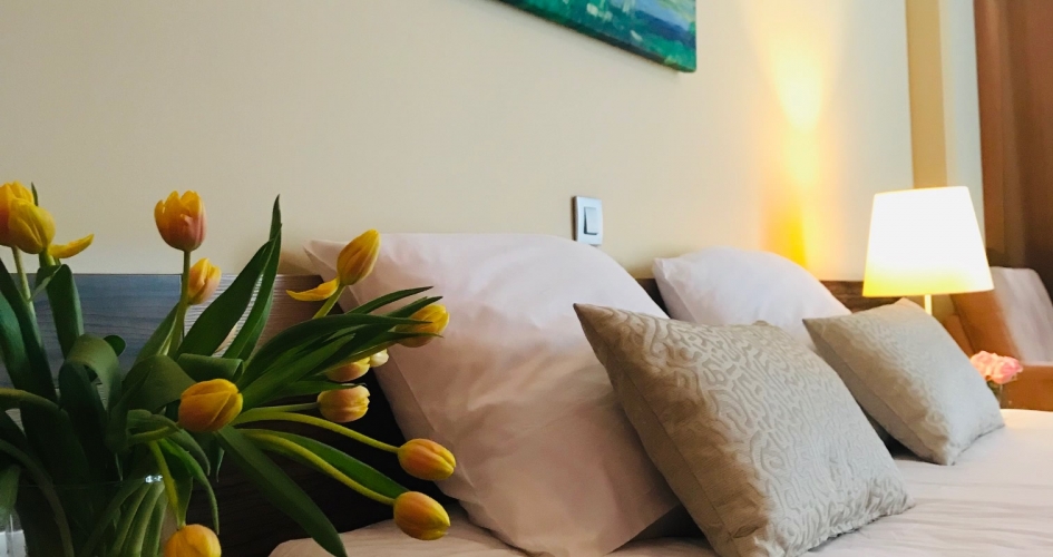 The suites are suitable for smaller business meetings as they are equipped with a living room and a meeting table for business meetings.