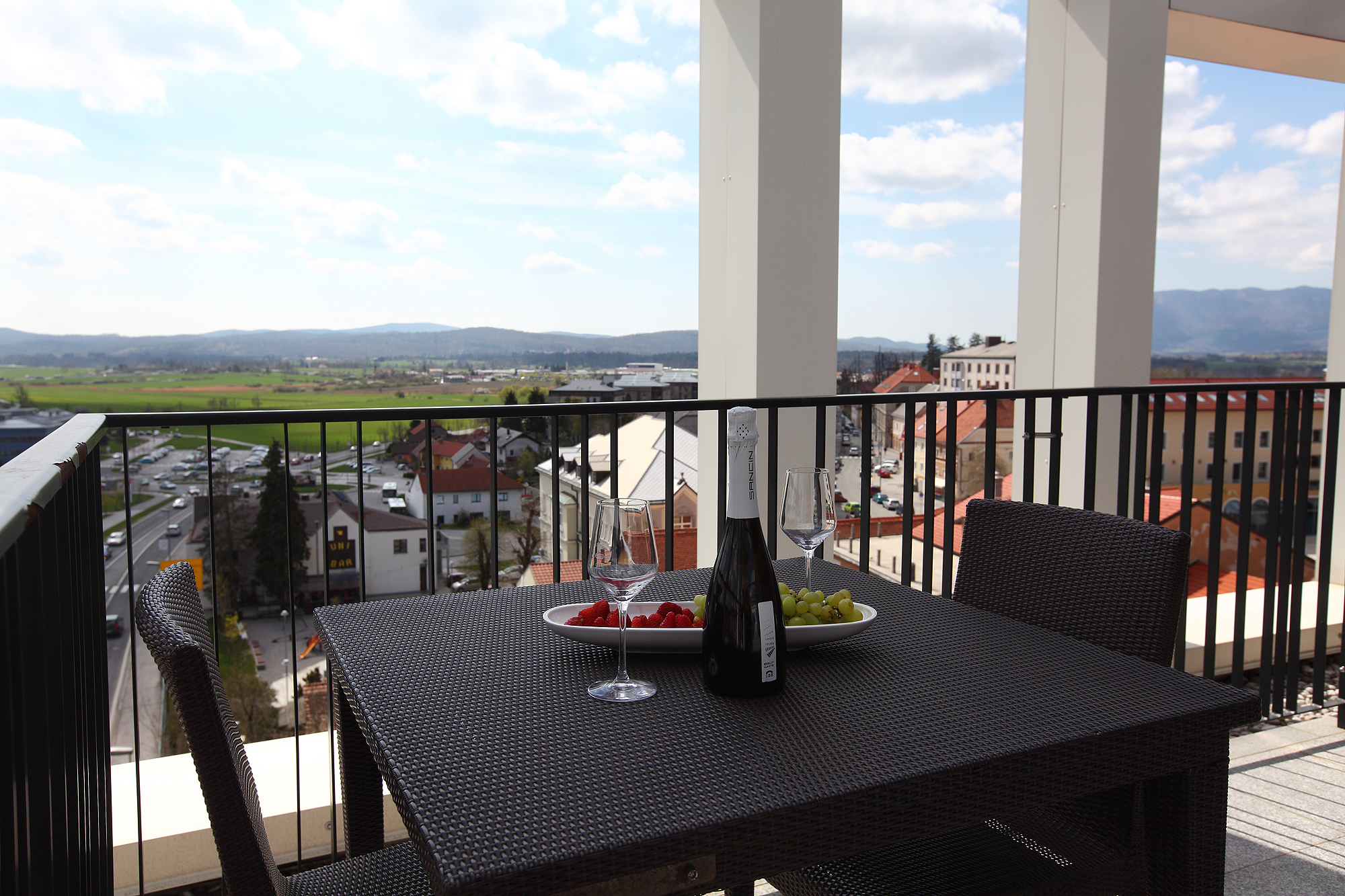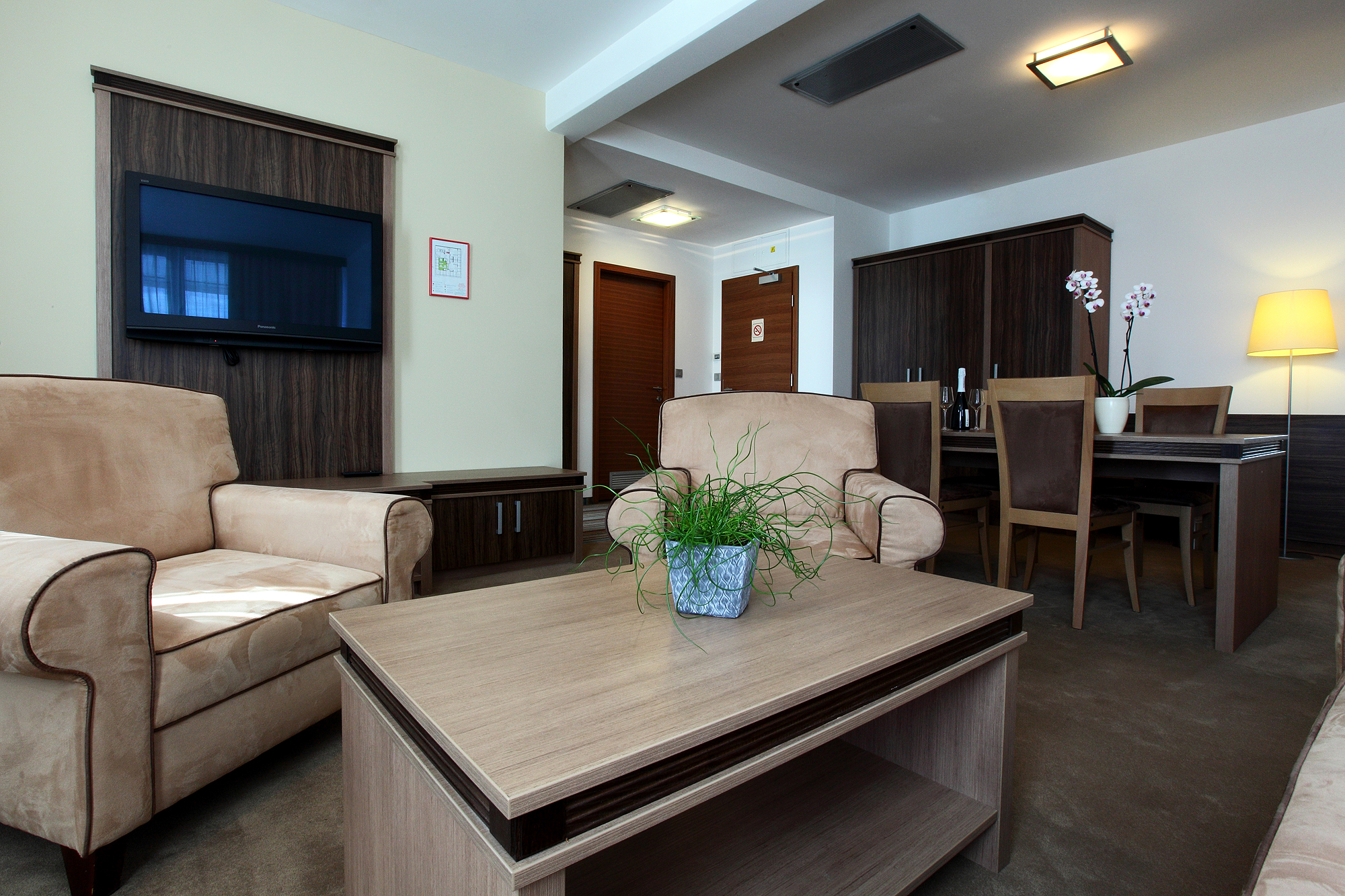 L'hotel dispone di 24 camere doppie e 3 suite con terrazzo, in cima al palazzo, con una vista unica sulla città e sulle colline circostanti. L'hotel a 4 * ha una reception aperta 24 ore al giorno. All'interno vi sono sale polifunzionali per l'organizzazione di vari eventi fino a 70 partecipanti, una caffetteria e un parcheggio sotterraneo.